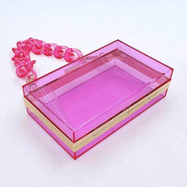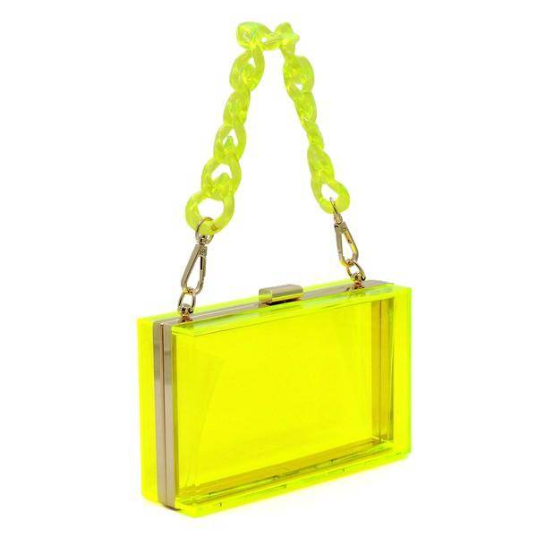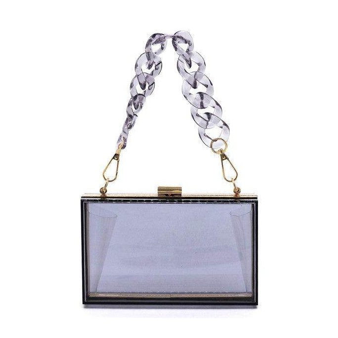 Learn more about our Acrylic Chain Handle See Thru Crossbody Clutch Purse at VacationGrabs: