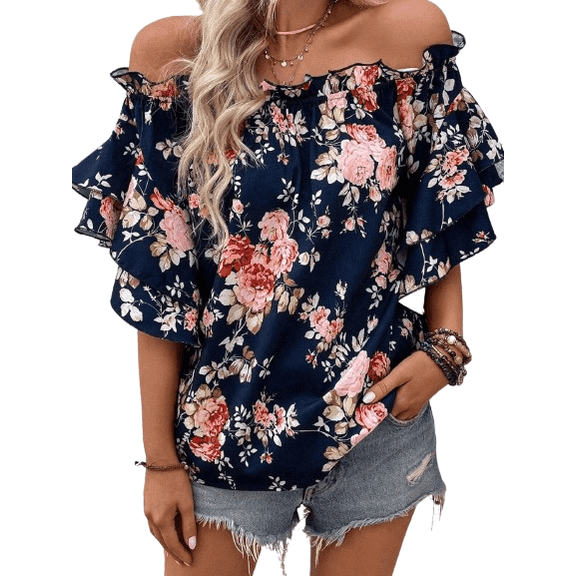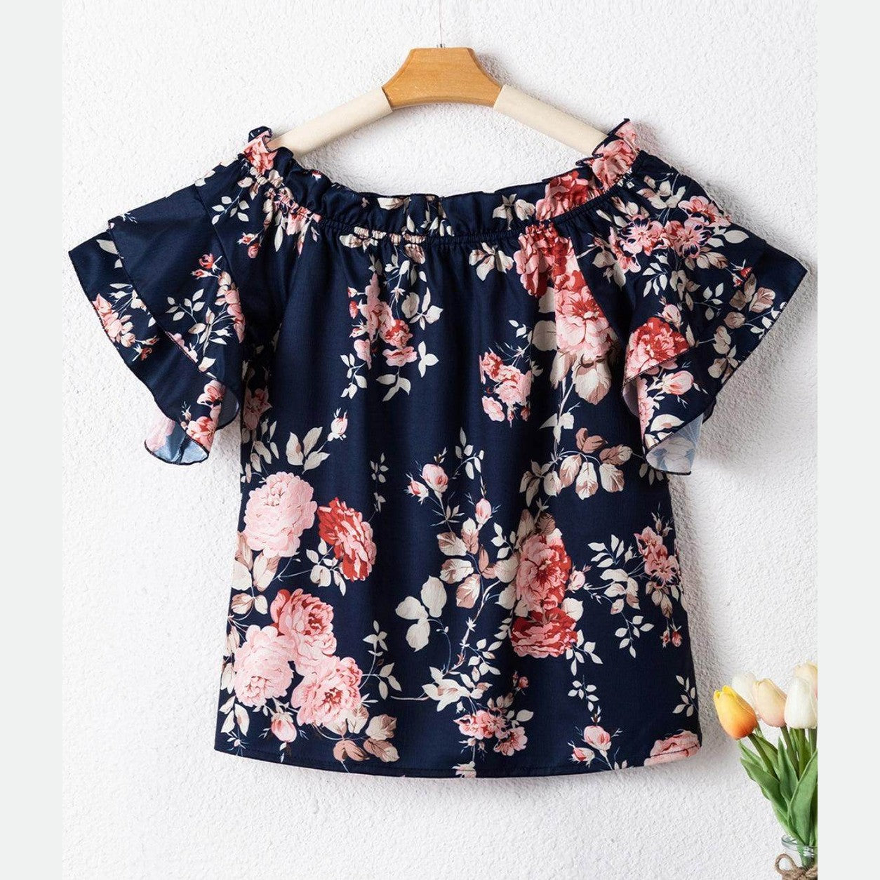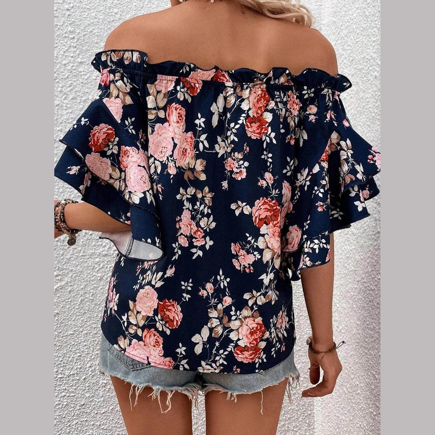 Learn more about our Printed Off-Shoulder Flounce Sleeve Blouse at VacationGrabs: