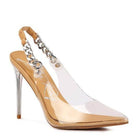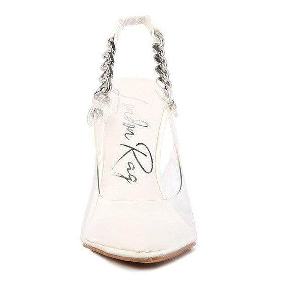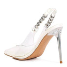 Learn more about our Goddess Heeled Clear Chain Slingback Sandal at VacationGrabs: