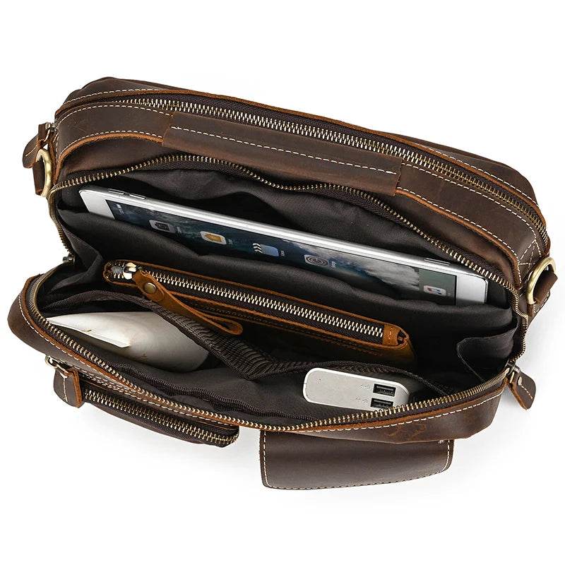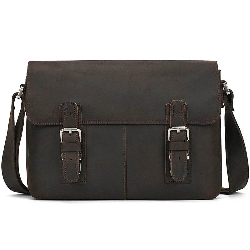 Genuine Leather Shoulder Bag – Retro Men's Crossbody with Handle