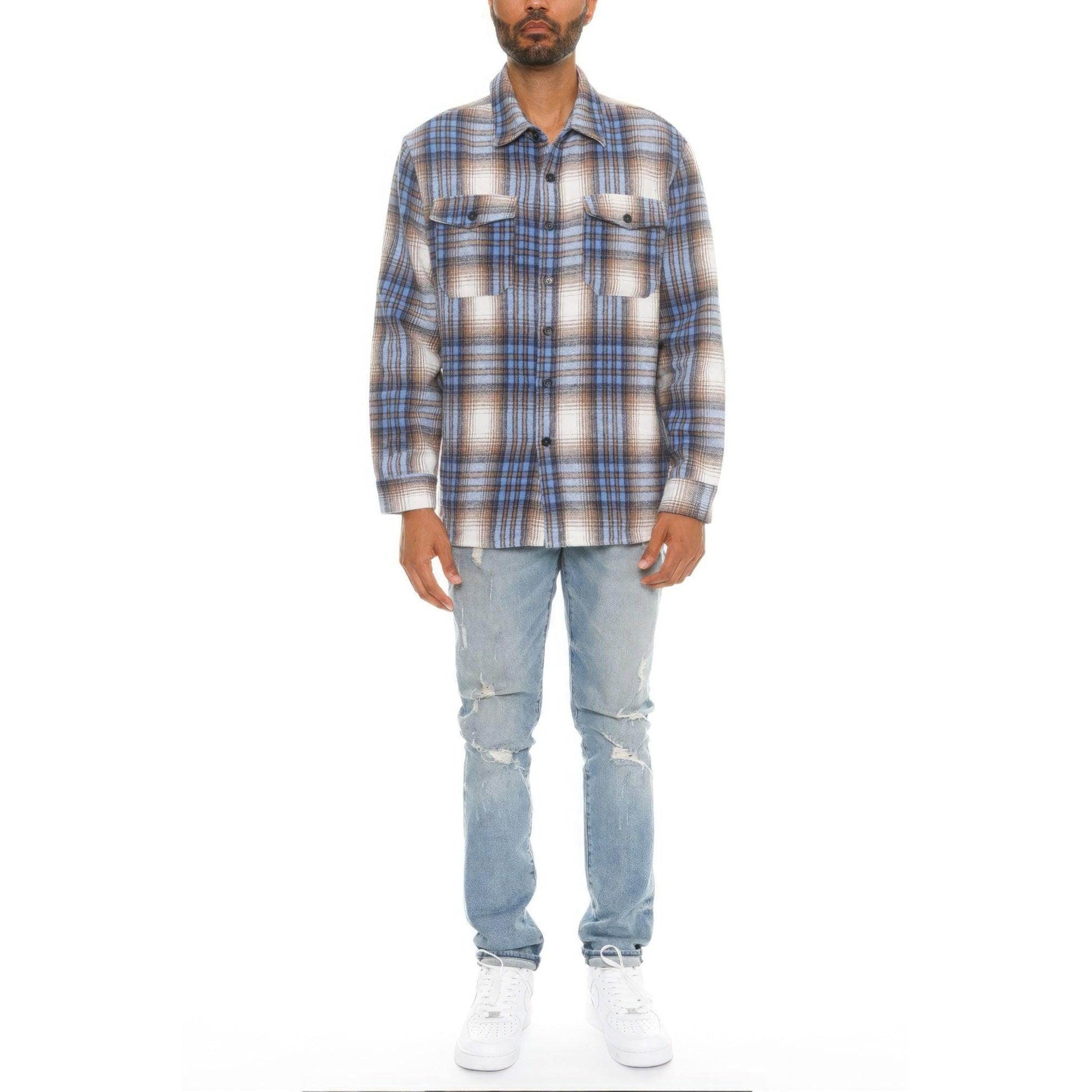 Crafted with attention to detail, this soft flannel shirt jacket features a timeless blue checkered pattern. Its relaxed fit makes it suitable for any occasion, whether you're exploring a new city or enjoying a campfire night. The soft flannel fabric provides warmth without compromising on style.