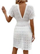 Step onto the sand in style with the Deep V Eyelet Cover Up Dress from Miss Sparkling. This boho crochet beach dress is made for sunny getaways. The deep V neckline creates a flattering shape. Eyelet details add texture and airy comfort. The short sleeves keep you cool on warm days at the beach.