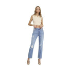 Shop now and add these High Rise Distressed Girlfriend Jeans to your collection. They are the perfect addition to any stylish e-commerce store and will surely be a customer favorite. Don't miss out on this must-have item!