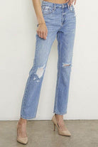 Learn more about our High Rise Distressed Girlfriend Jeans at VacationGrabs: