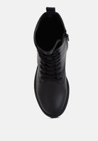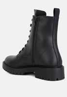 Bring out your inner rockstar with these faux leather lace up boots. Perfect for transitioning your wardrobe to more autumn friendly choices. Pair your favourite summer dresses with stockings and these boots to make your wardrobe cold proof. The versatility of this pair makes them an all-season favourite. Ideal for a day-to-night transition, keeping you comfortable and stylish all day long.