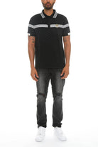 Step into your next getaway with confidence in this Italian Print Black Collared Polo Shirt. This stylish vacation polo shirt is designed for those who appreciate both comfort and fashion.