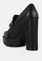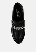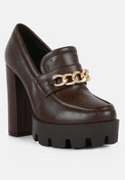 Dress the high street babe way, even at work with these sky-high block-heeled statement women's loafers. Made with high-quality soft PU, these loafers give support with a chunky raised platform and a lightly cushioned insole. The chunky metal chains add to the look and are trendy.