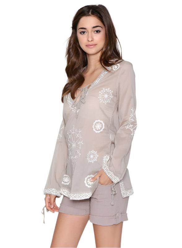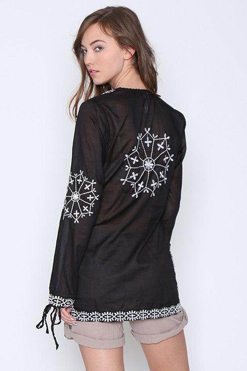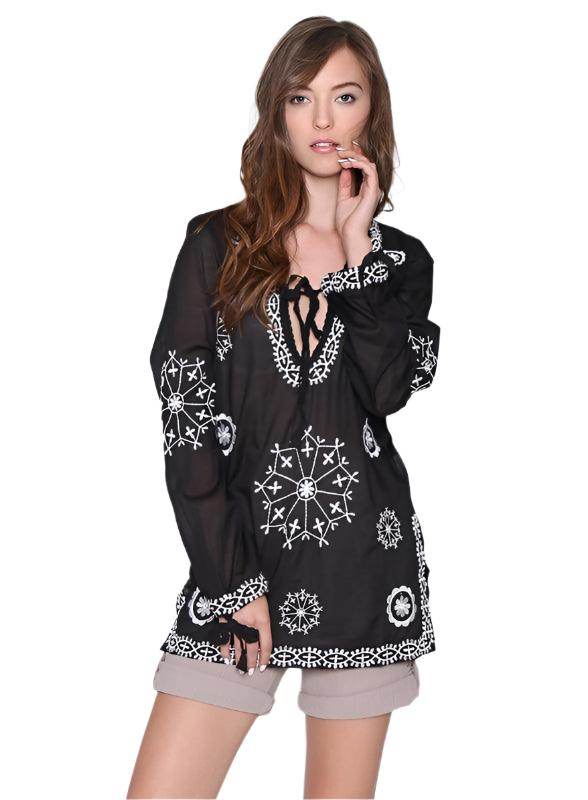 The Aztec long sleeve top is versatile, easily transitioning from day to night. The soft fabric feels gentle on the skin, providing all-day comfort. It's breathable, ensuring you stay cool even on warm days. The top's fit is flattering for all body types, enhancing your natural silhouette effortlessly.
