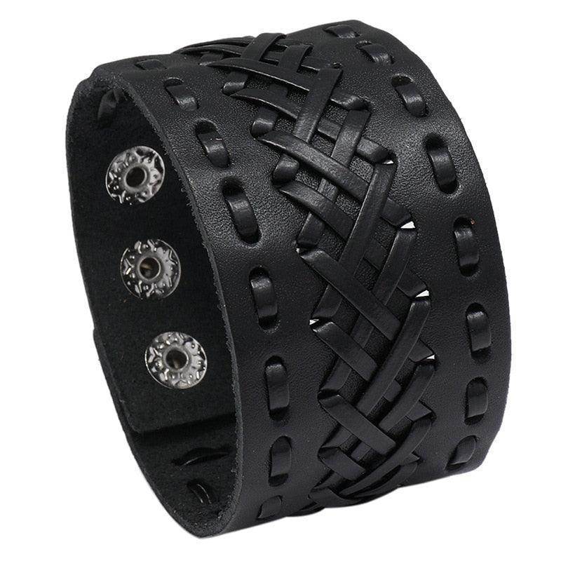 The wide cuff pu leather bracelet is exclusively available at VacationGrabs, your go-to destination for stylish men's jewelry. Elevate your fashion game and grab yours today. Embrace the combination of vintage charm and modern flair with this striking piece. Stand out from the crowd, and let your accessories speak volumes about your personality.