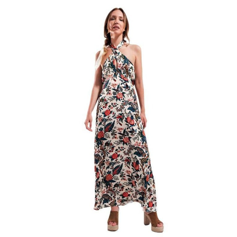 This dress features a flattering halter neck that showcases your shoulders beautifully. The maxi length provides a flowy silhouette, ensuring you can move with ease and grace. It's ideal for beach walks or evening dinners by the shore. The lightweight fabric of the beige paisley maxi dress ensures you stay comfortable in warm weather.