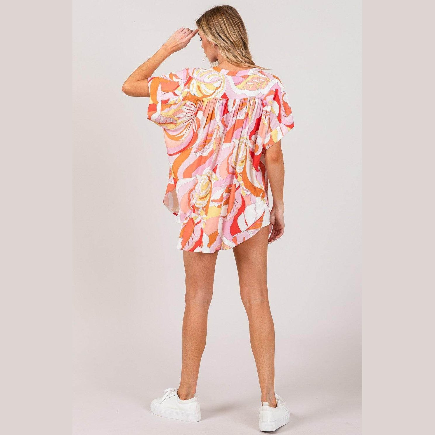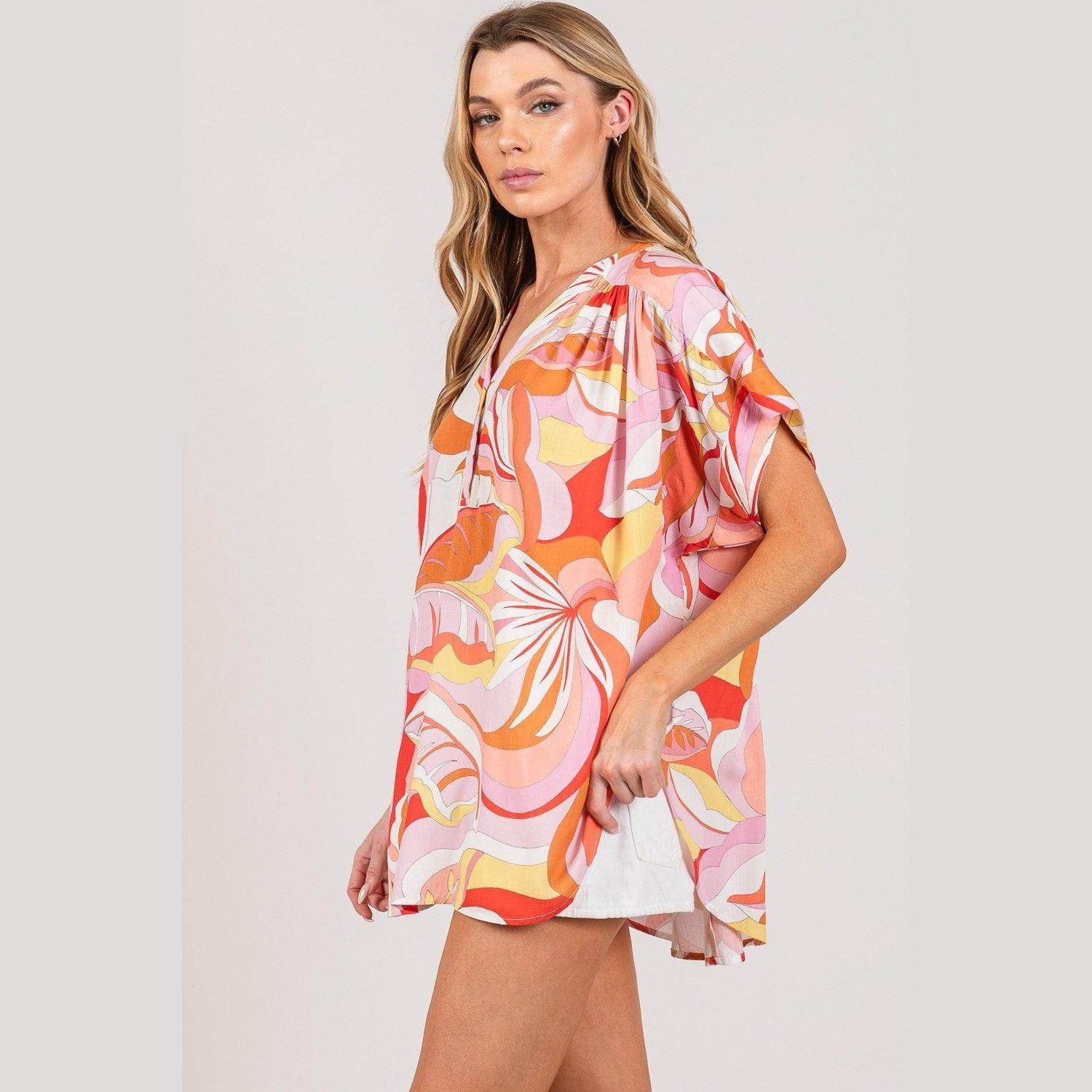 Learn more about our SAGE + FIG Abstract Print Half Button Blouse at VacationGrabs: