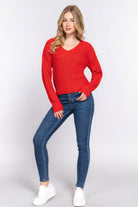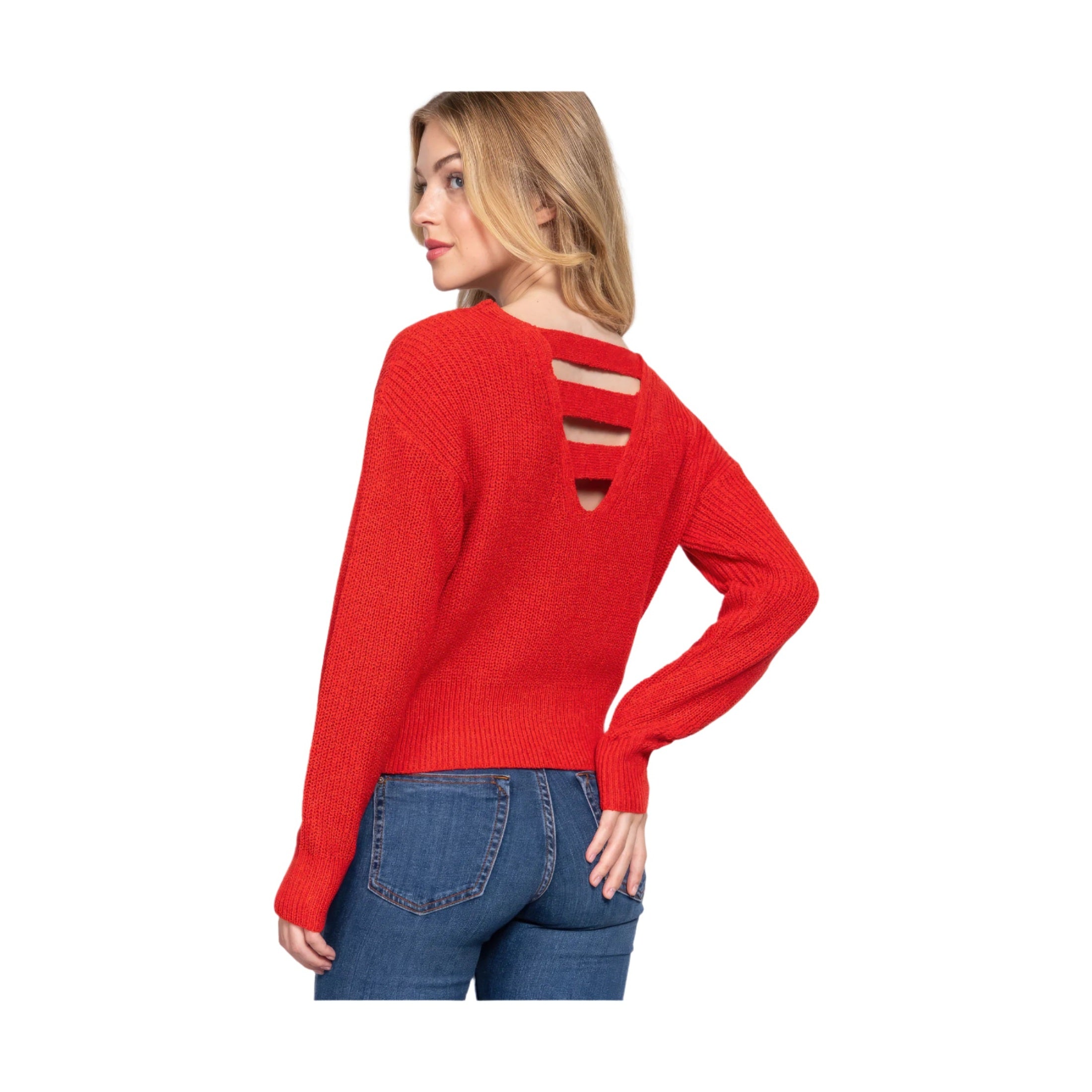Stay bold and stylish with the Dolman Long Sleeve V-Neck Strappy Open Back Sweater in Orange. Embrace the comfort and statement-making style of this sweater, perfect for adding a touch of flair to your winter wardrobe.