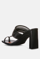 With bangle strap detailing and light cushioning for comfort, these mid-heel block sandals are here to make a statement wherever you walk! The sandals have a toe ring detail and thin faux leather straps making them look extra gorgeous on your feet.