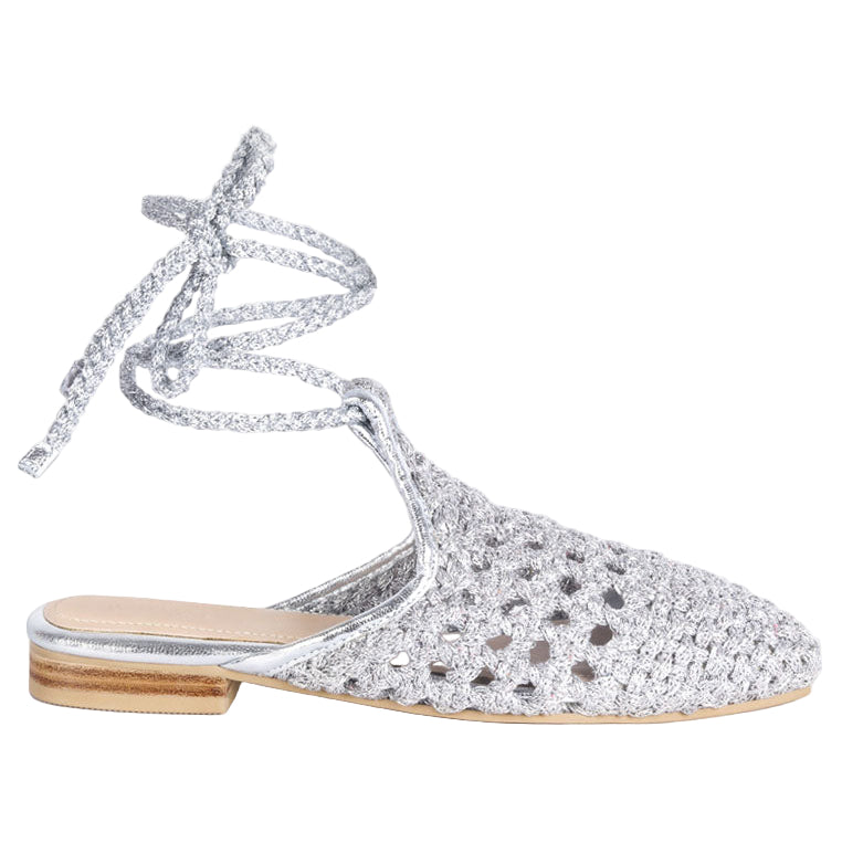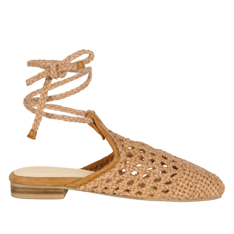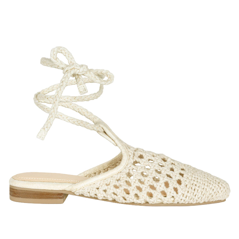 Bartsi Handwoven Cotton Tie Up Mule Flats