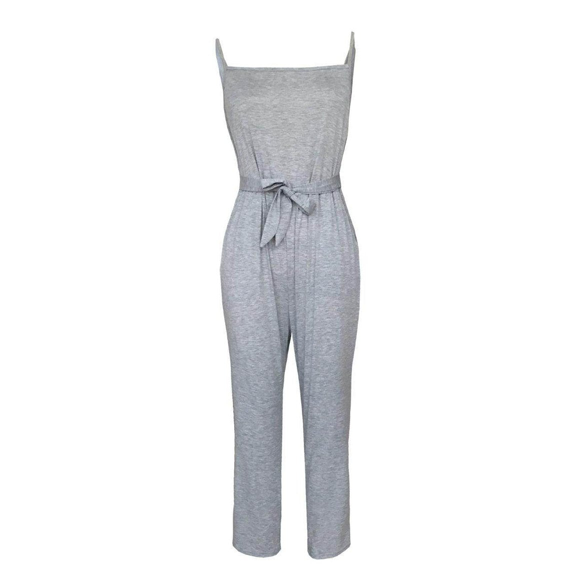 Learn more about our Tied Spaghetti Strap Square Neck Jumpsuit at VacationGrabs: