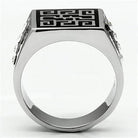 Discover the bold elegance of the Mens Silver Glyph Stainless Steel Black Synthetic Crystal ring. This stainless steel black ring is a standout piece in men's jewelry. It's perfect for those looking to elevate their style with a touch of sophistication.