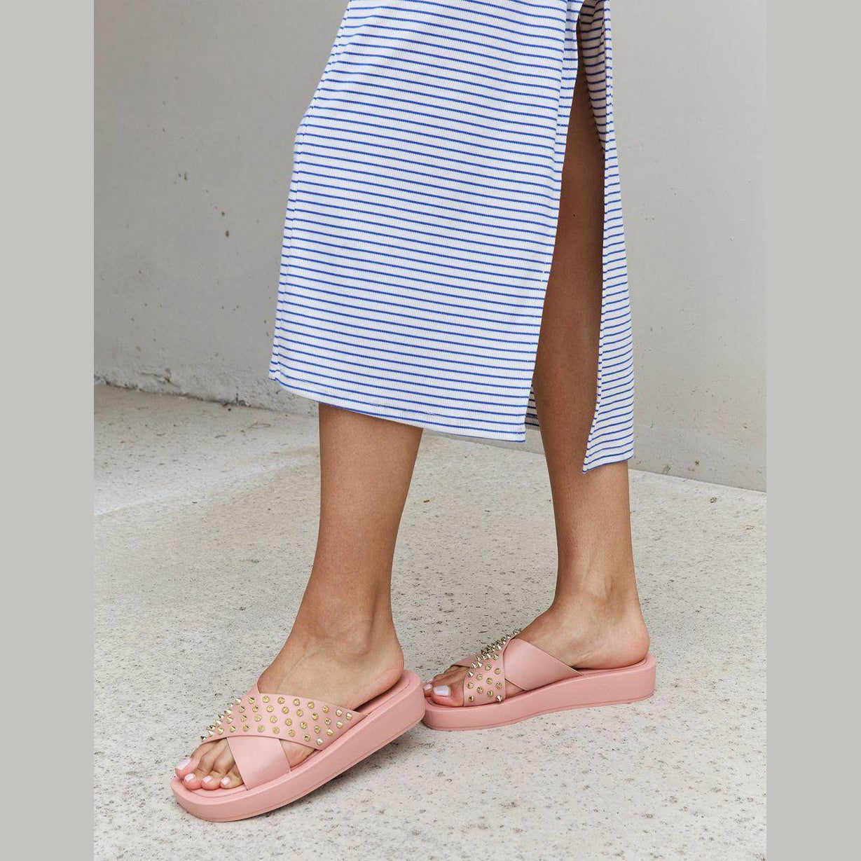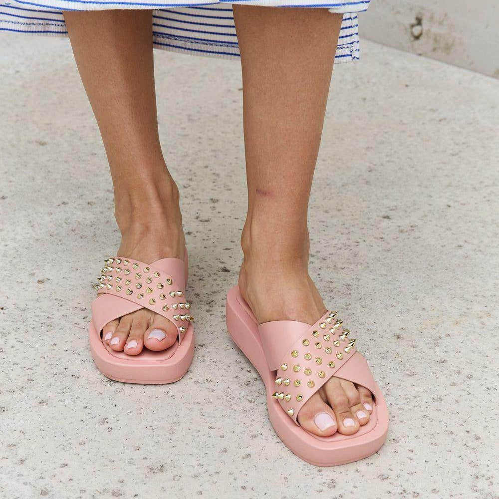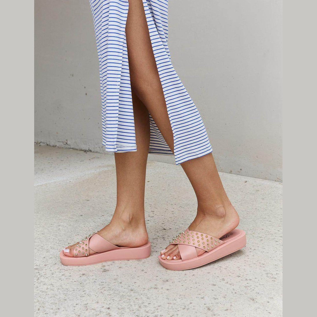 Learn more about our Studded Cross Strap Sandals in Blush at VacationGrabs:
