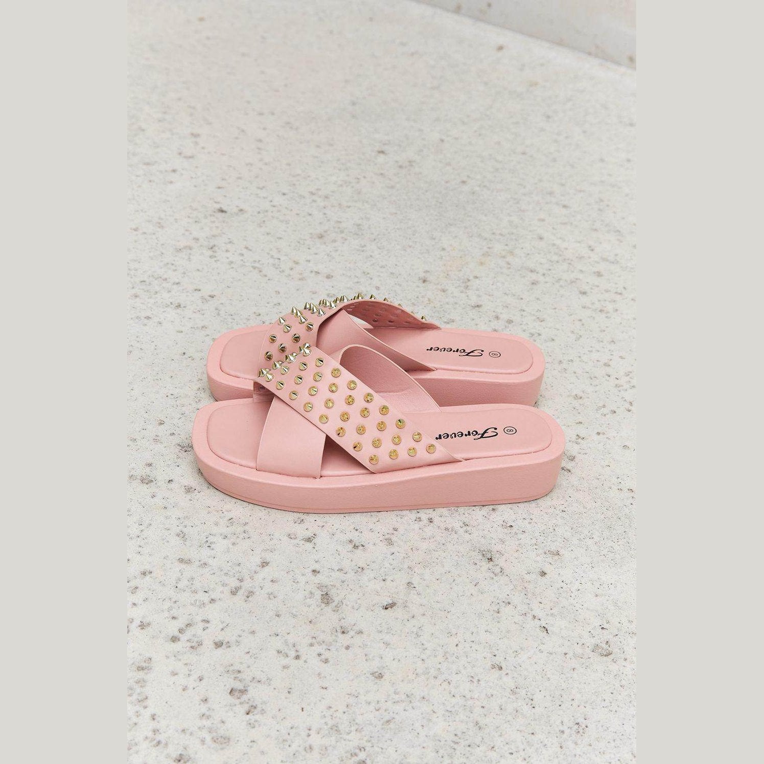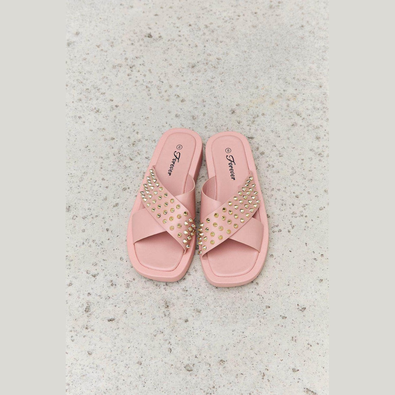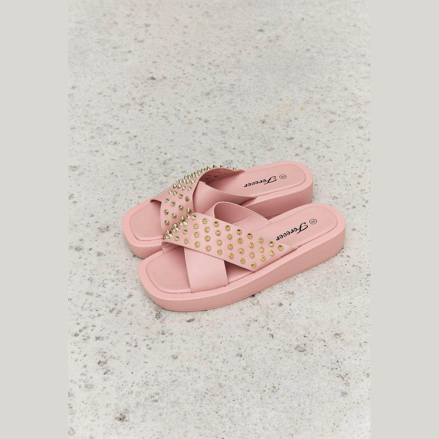 Introducing the Forever Link Studded Cross Strap Sandals in Blush - the perfect combination of fashion and functionality. These sandals feature a cross strap design that not only adds an elegant touch, but also ensures a secure and comfortable fit. The straps are adorned with stunning studs, adding a hint of edginess and sophistication to any outfit.