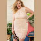 Embrace your style with our Plus Size Crochet Lace Sleeveless Dress with Round Hem in Blush. Order now and enjoy a beautiful blend of comfort and elegance!