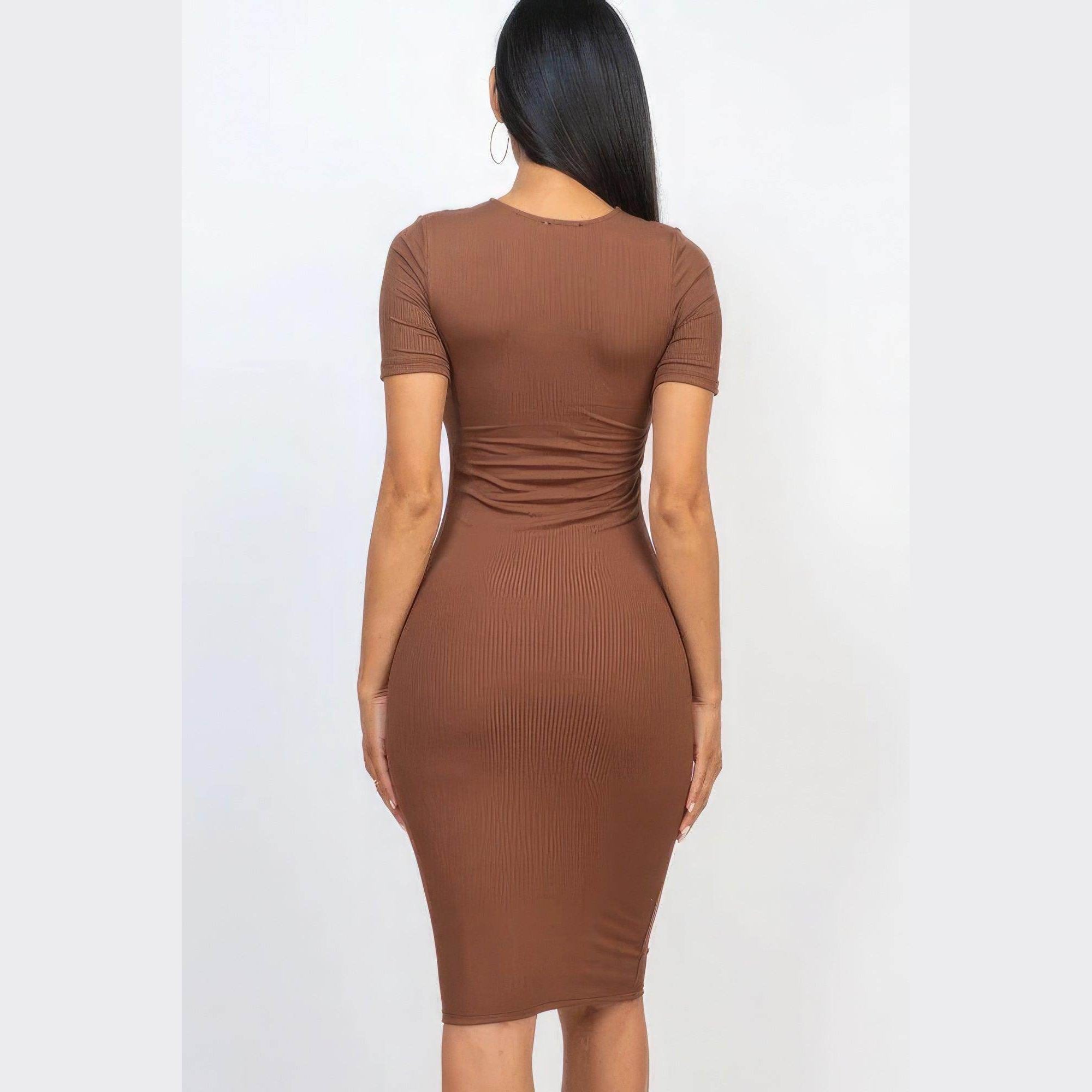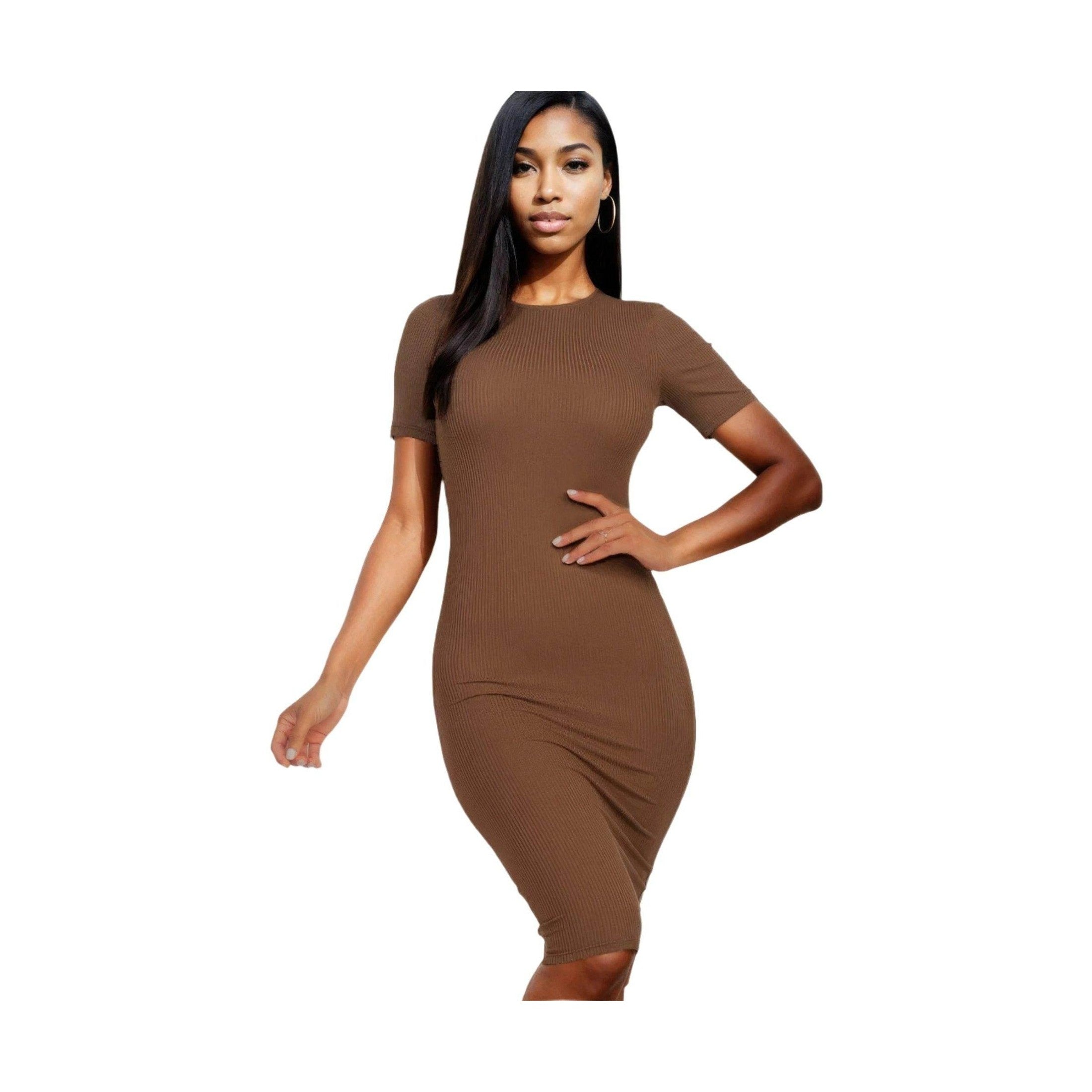 Learn more about our Ribbed Bodycon Midi Dress - Brown at VacationGrabs:
