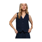 Add the V-Neckline with Front Button Closure Pin Stripe Woven Vest in Navy/White to your cart today and enjoy a chic, versatile piece that enhances your style!