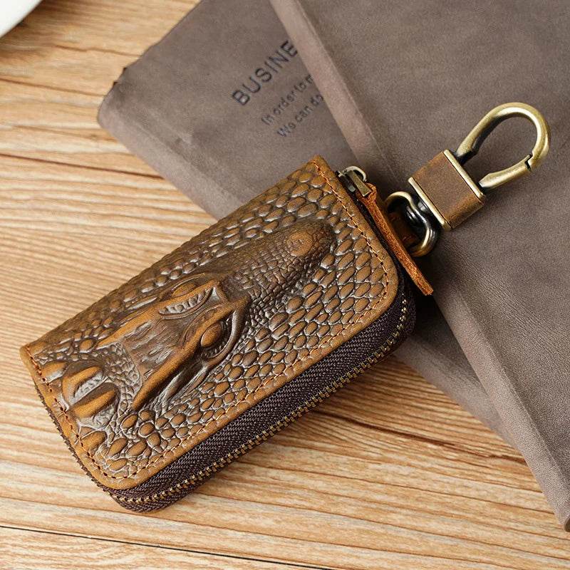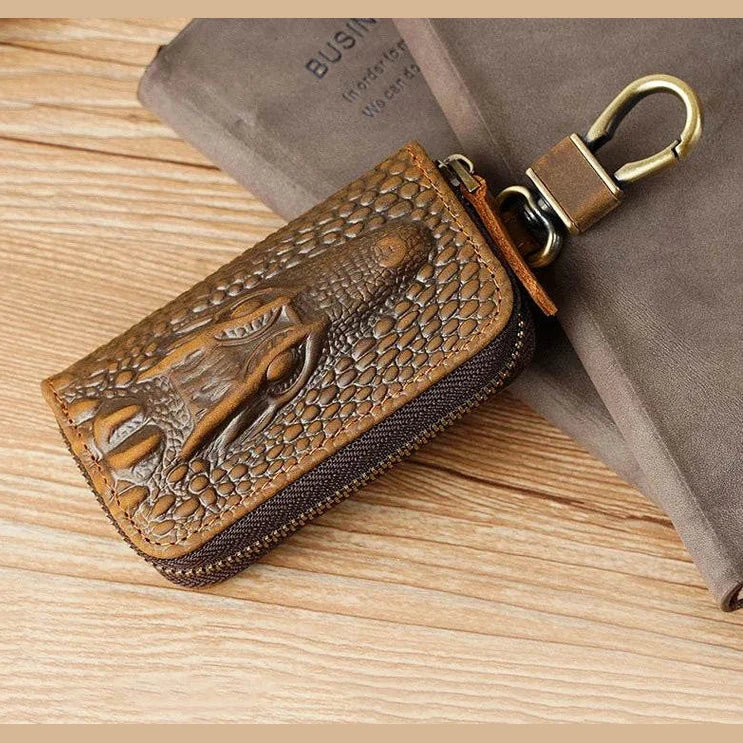 Alligator Pattern Leather Key Wallet for Car Keys Genuine Leather Key Case