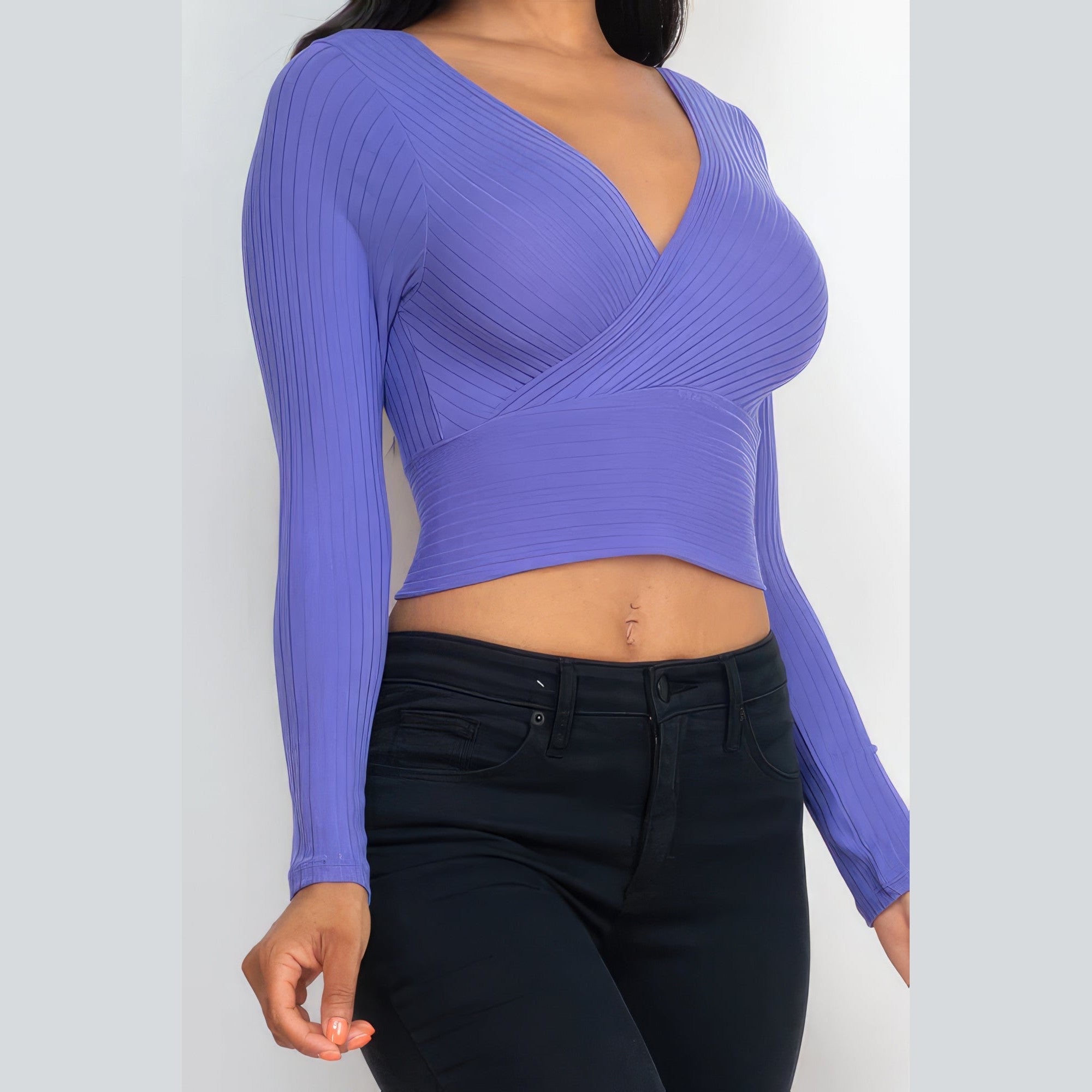 Elevate your casual and stylish wardrobe with our Ribbed Wrap Front Long Sleeve Top, offering the perfect blend of fashion-forward design and comfort.