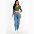 1. Style: Ribbed long sleeve top with a front wrap style and V neck, offering a fashionable and trendy look.