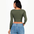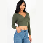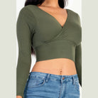 Ribbed Wrap Front Long Sleeve Crop Top
