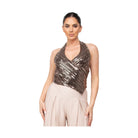 Rose Gold Surplice Halter Sequin Top