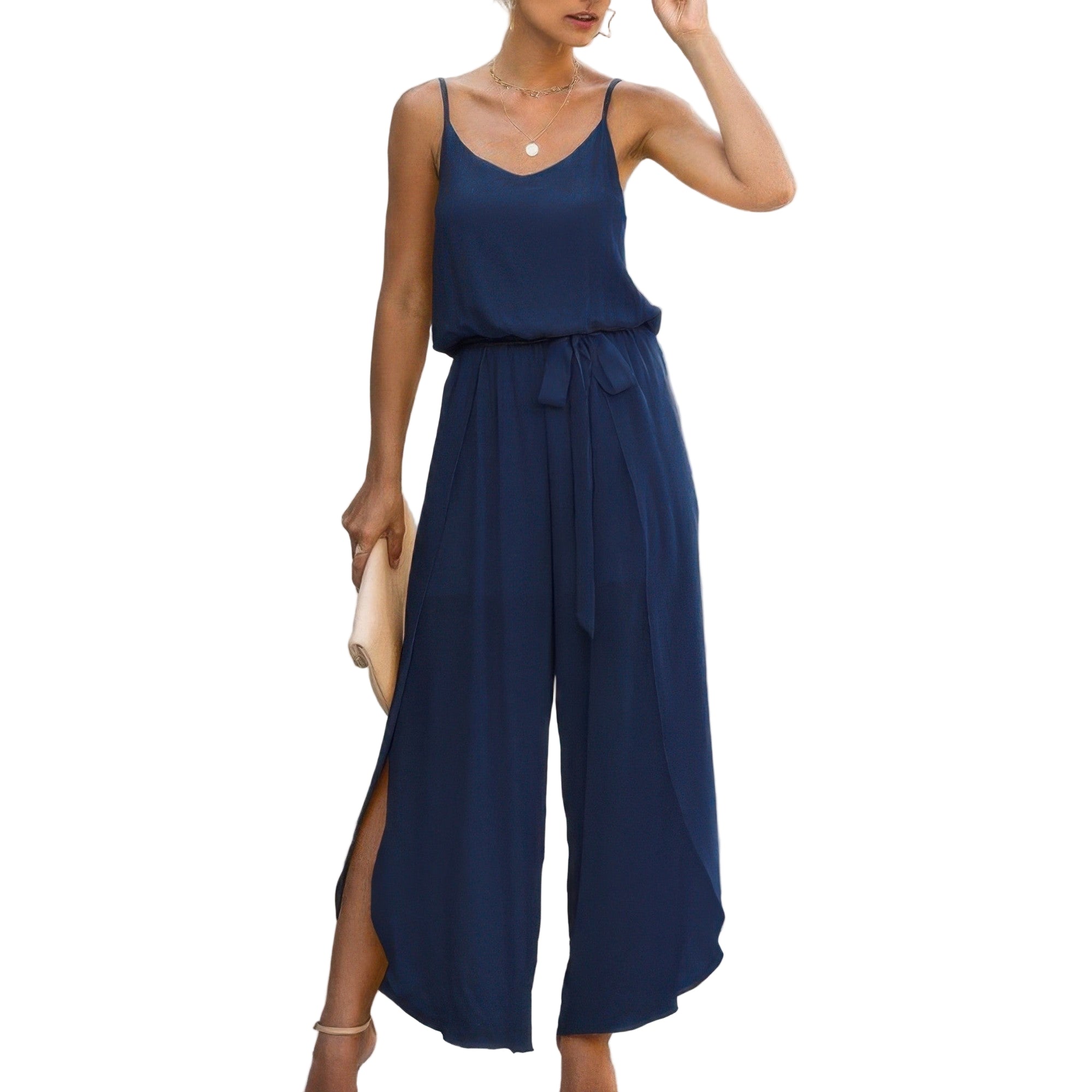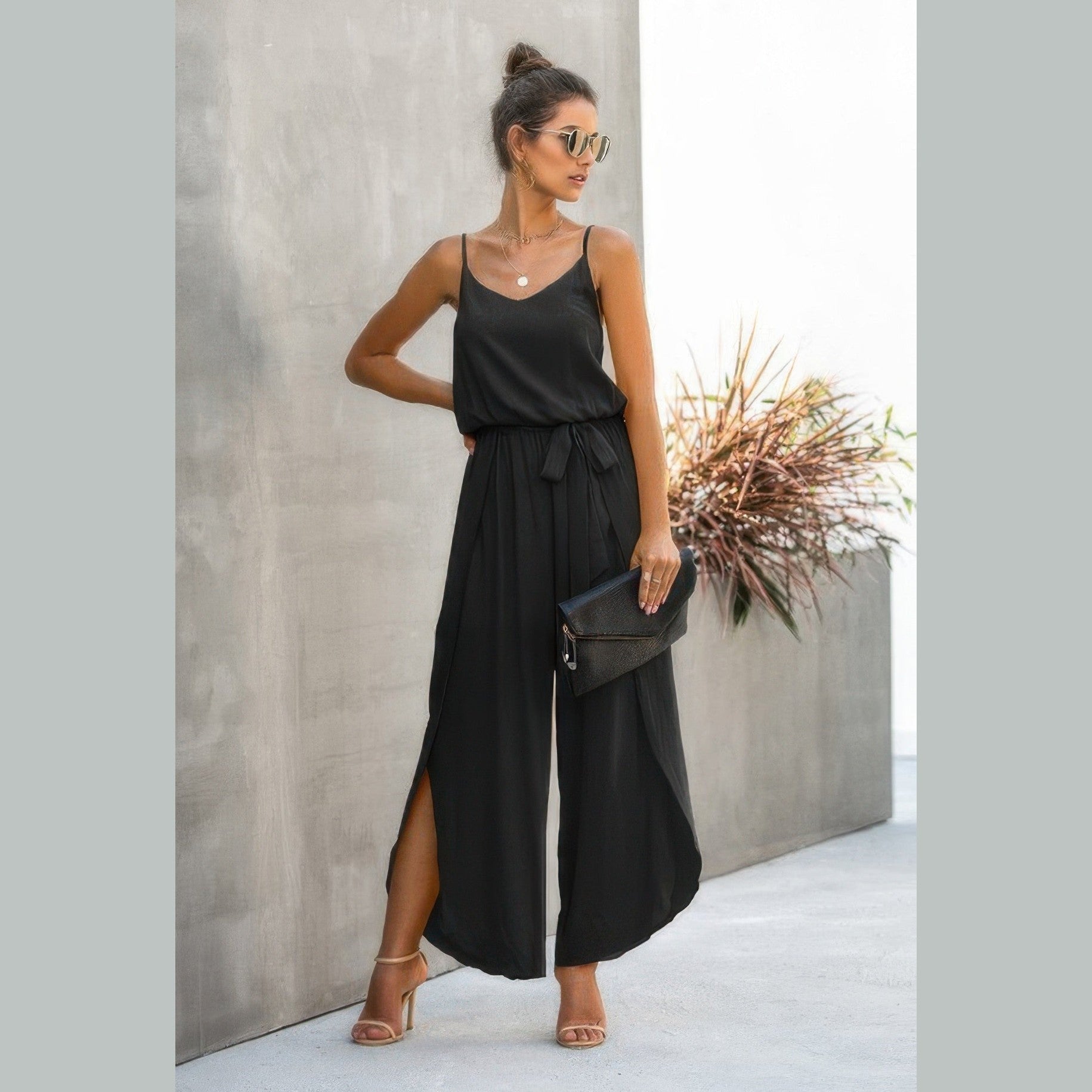 This V-neck suspenders wide leg side slit jumpsuit blends sleek sophistication with effortless comfort for any occasion. Crafted from 100% polyester, it’s lightweight and breathable, offering all-day ease. The V-neckline and adjustable suspenders add a modern, flattering touch, while the wide leg cut and side slit details create a breezy, elongated silhouette. This jumpsuit transitions seamlessly from workdays to casual parties, making it a versatile staple for your wardrobe.