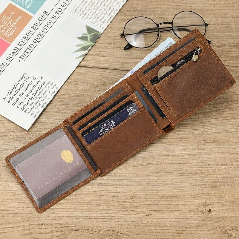 Leather Wallet for Men Crazy Horse Short Purse Multi Card Holder