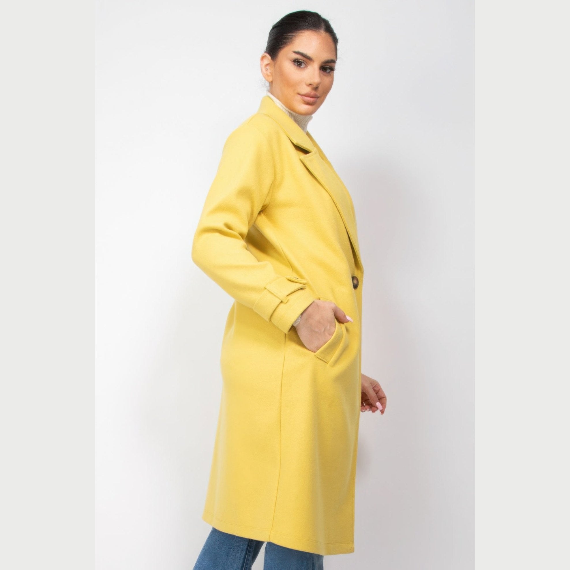 Combining classic elegance with a modern twist, this coat in citron offers a unique and vibrant addition to your fall wardrobe. Its timeless design and practical features make it a versatile piece for various occasions.