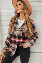 Enjoy effortless style with this Geometric Plaid Print Pocketed Shirt designed for women. Its loose fit offers comfy, breezy wear, perfect for layering or enjoying a relaxed day out. Playful plaid meets functional pockets, making it both fun and practical—your new go-to for casual charm.