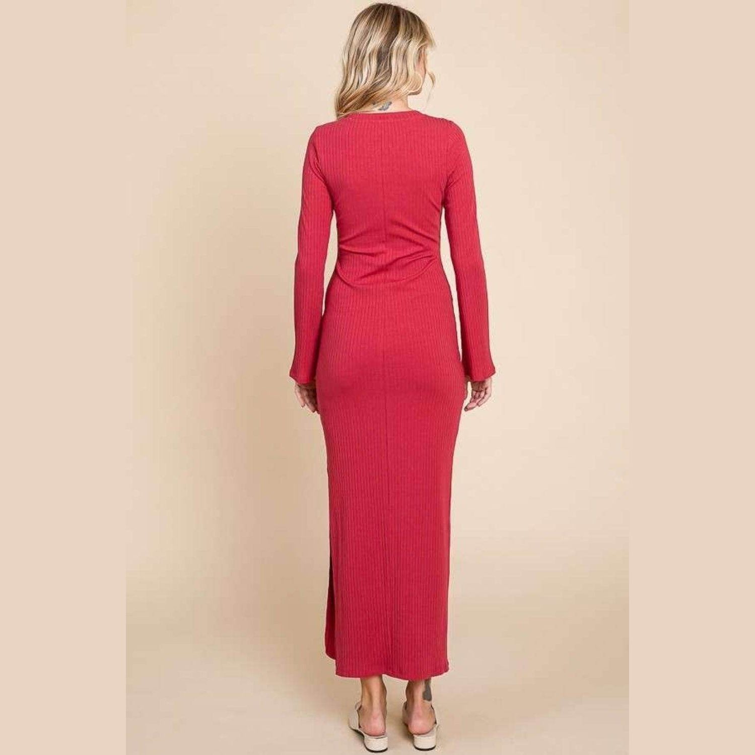 Learn more about our Culture Code Full Size Round Neck Bodycon Bell Maxi Dress at VacationGrabs: