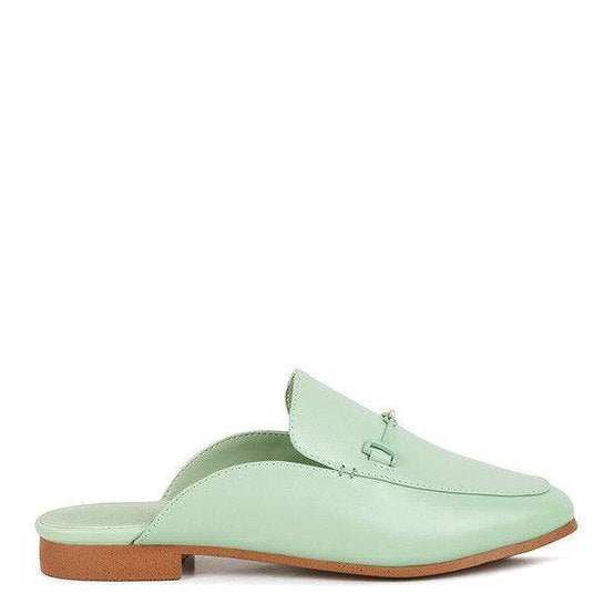Lightweight mules for sweaty summer days. Classic style that looks luxe with every outfit. Includes a horsebit embelishment and flat heels for added ease while walking.