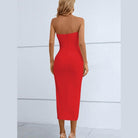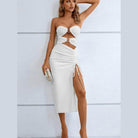 Cutout Strapless Drawstring Detail Split Bandage Dress