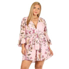 Get ready to look effortlessly chic in the Plus Size Floral Chiffon 3/4 Sleeve Tie Waist Romper in Pink Multi. Add it to your wardrobe today!
