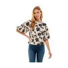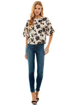 The standout feature is the intricate floral design, perfect for those who love a touch of nature in their wardrobe. The round neckline enhances the top's modern aesthetic, creating a chic yet laid-back vibe. Pair it with simple jewelry to emphasize its floral patterns and let the top be the star of your outfit.
