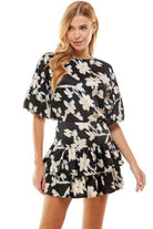 Crafted from lightweight, breathable fabric, the round neckline floral top provides a relaxed fit that ensures comfort in any climate. Its soft material and flattering silhouette make it a versatile piece, easily pairing with jeans, skirts, or shorts. Effortlessly transition from a casual day look to an evening out with friends by simply accessorizing.