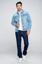 Step into a world of relaxed fashion with the Men's Light Denim Blue Jean Jacket with Distressed details by Blue Age. Specifically crafted for those who value style and comfort, this vacation style blue jean jacket is a must-have addition to your wardrobe. Its light denim fabric provides a casual yet chic look, perfect for any relaxed outing.