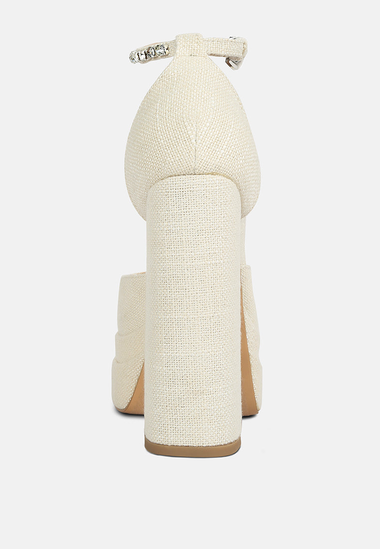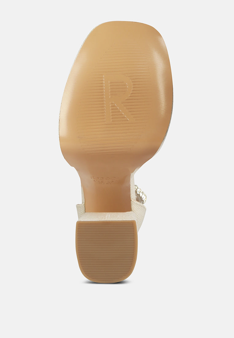 Cosette Diamanate Embellished Ankle Strap High Block Heel Sandals
