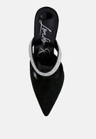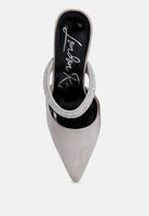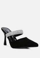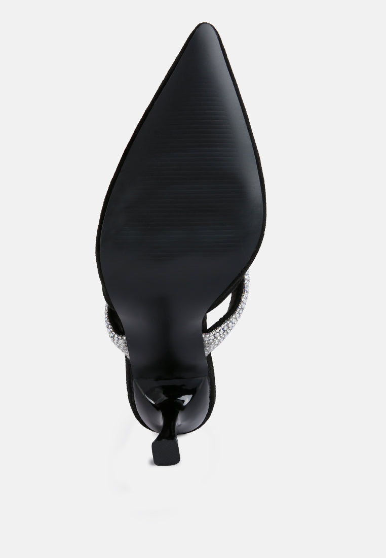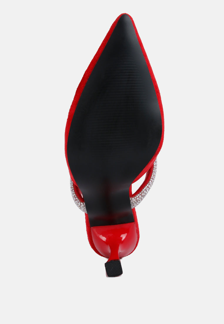 The diamante detail strap amps up the whole look, and the pointed-toe construction gives the sandals a sharp look. The pair is a show-stopper, indeed! The short heel and soft cushion insole make the slip-on sandals easy to wear and a go-to footwear when out and about!
