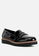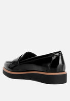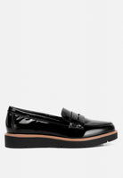 The patent faux leather loafers are sharp and chic with the patent shine and contrasting frame that elevates the visual design of the shoes. The wedge heel is comfortable and easy to wear. The loafers are a versatile pair and an ideal choice for daily work wear as well as casual wear.