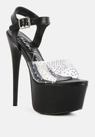 The ultra high platform sandals are alluring with subtle rhinestone embellishments on the clear vamp. The bling shoes can be worn as wedding shoes, wedding guest shoes, and more! Perfect for when you want an elevation to your look!