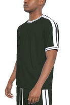 Striped Tape Short Sleeve Crew Neck Tshirt