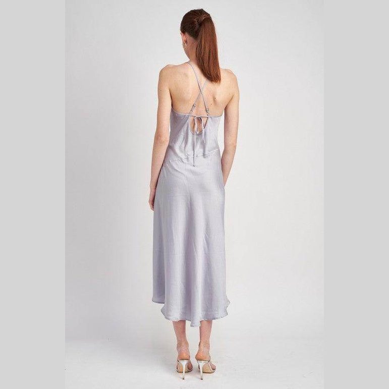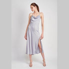 Light Blue Cowl Neck Satin Slip Midi Dress