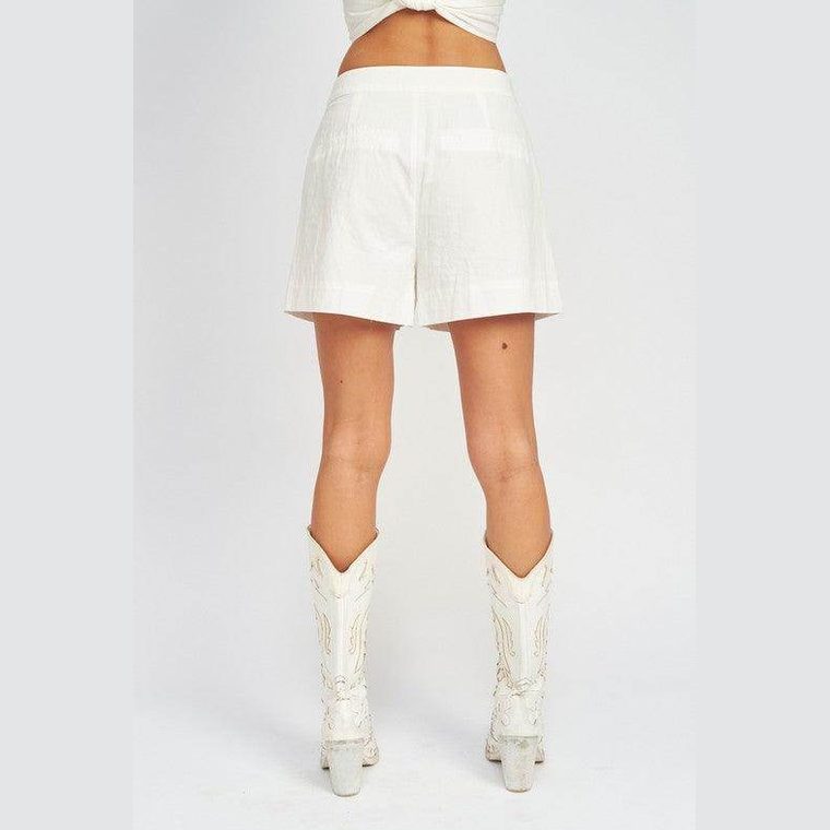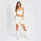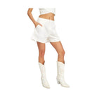 Ce short taille haute blanc pour femme est l'incontournable de l'été parfait pour toute garde-robe. La coupe taille haute flattera toutes les morphologies et le tissu léger est parfait pour voyager dans des climats plus chauds. Profitez d'une belle apparence tout en gardant à l'esprit des prix abordables.
