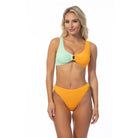 Feel confident in this women's swimwear 2PC, made for lounging or swimming. The bikini bottoms sit comfortably on the hips. Both pieces offer stretch for easy movement. The color contrast delivers a fresh and playful vibe.