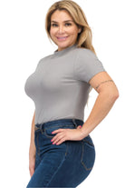 Elevate your wardrobe with our Plus Size Ribbed Short Sleeve Bodysuit in classic Grey. Add it to your collection today for the perfect blend of comfort and style!